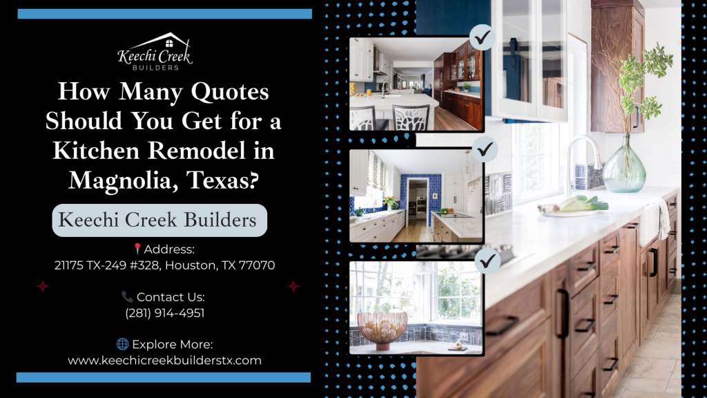 For kitchen remodeling services in Magnolia Texas, homeowners should obtain a minimum of three detailed, itemized quotes from licensed, insured contractors to accurately compare pricing structures, material specifications, project timelines, and warranty coverage—though complex luxury renovations may benefit from four to five proposals to evaluate specialized expertise and innovative design approaches.