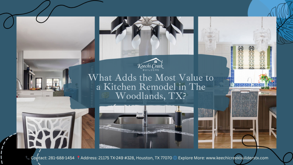 Upgrading kitchen cabinets, installing durable countertops (quartz or granite), and replacing appliances with energy-efficient models add the most value to a kitchen remodel in The Woodlands, TX. A minor, thoughtful kitchen renovation can yield up to an 80–83% return on investment (ROI) in the area.